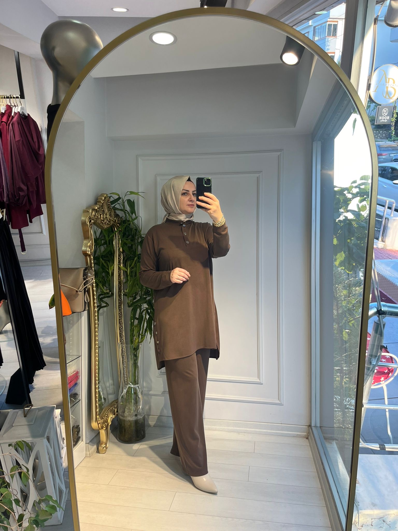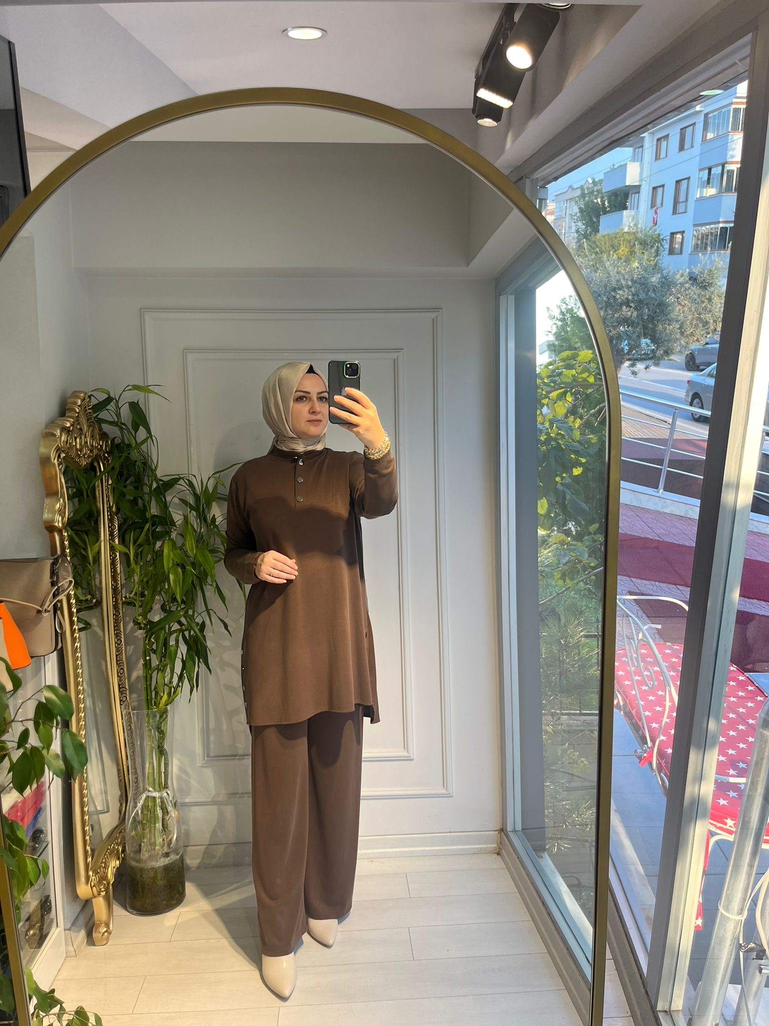 DÜĞME DETAYLI OYSHO TAKIM KAHVE