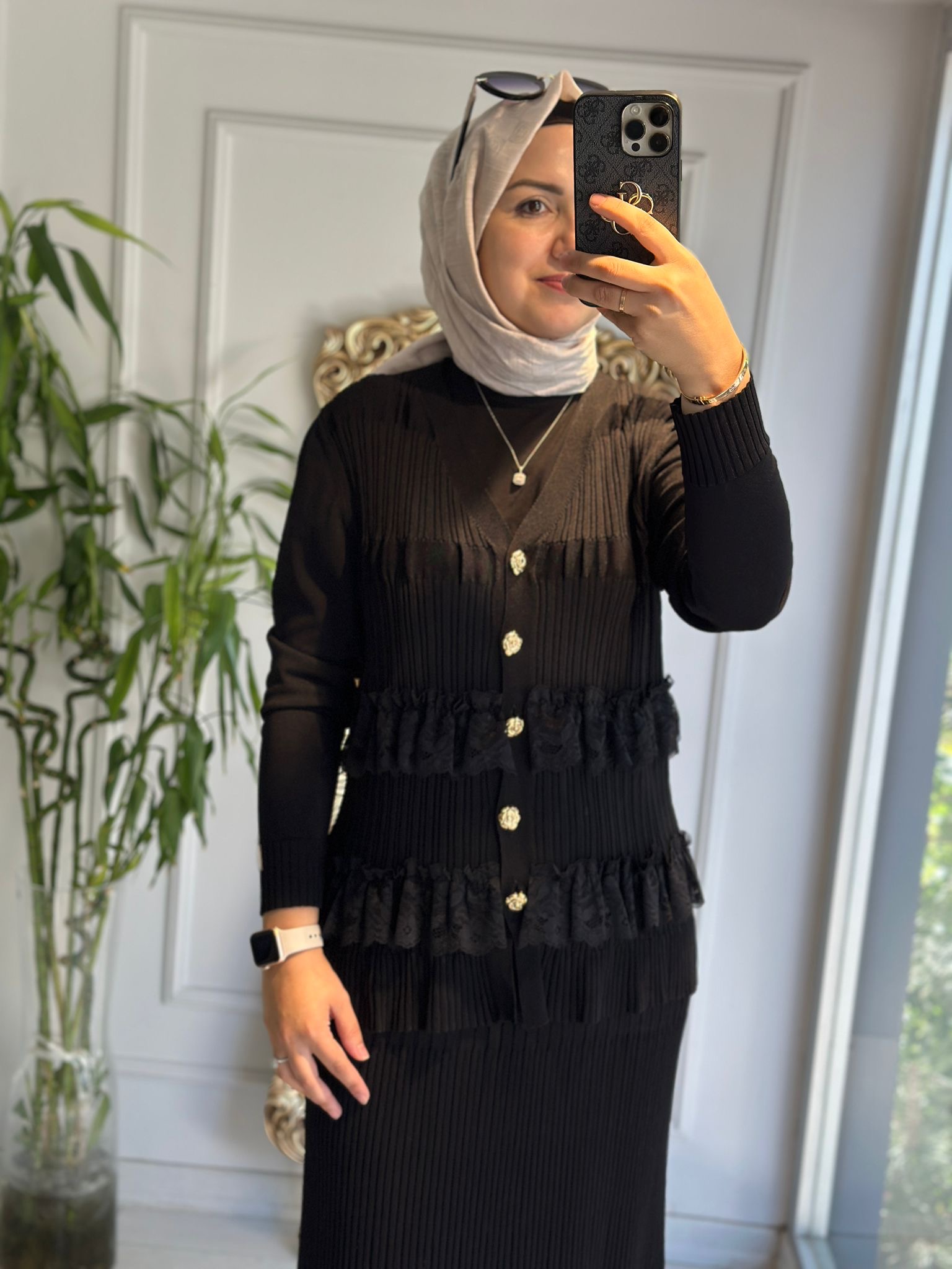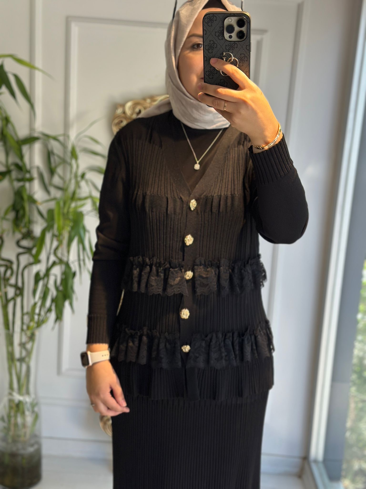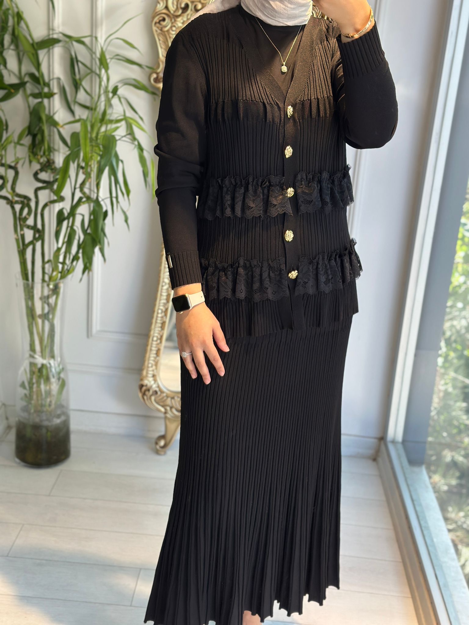Etek ucu 2 Sıra Dantel Hırka Siyah