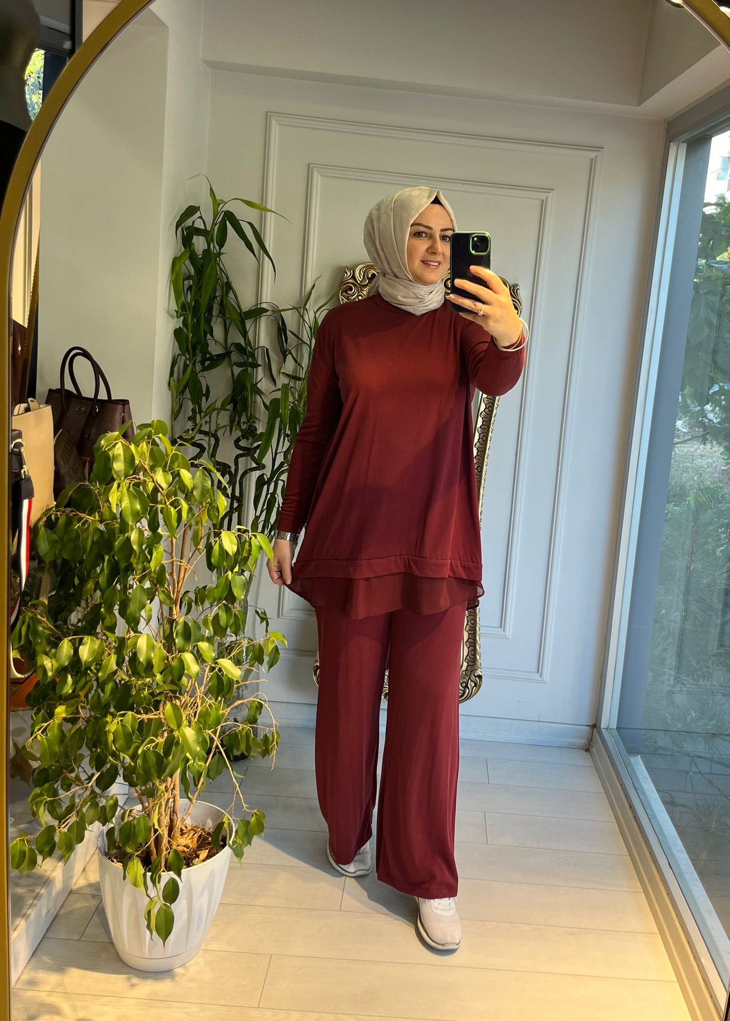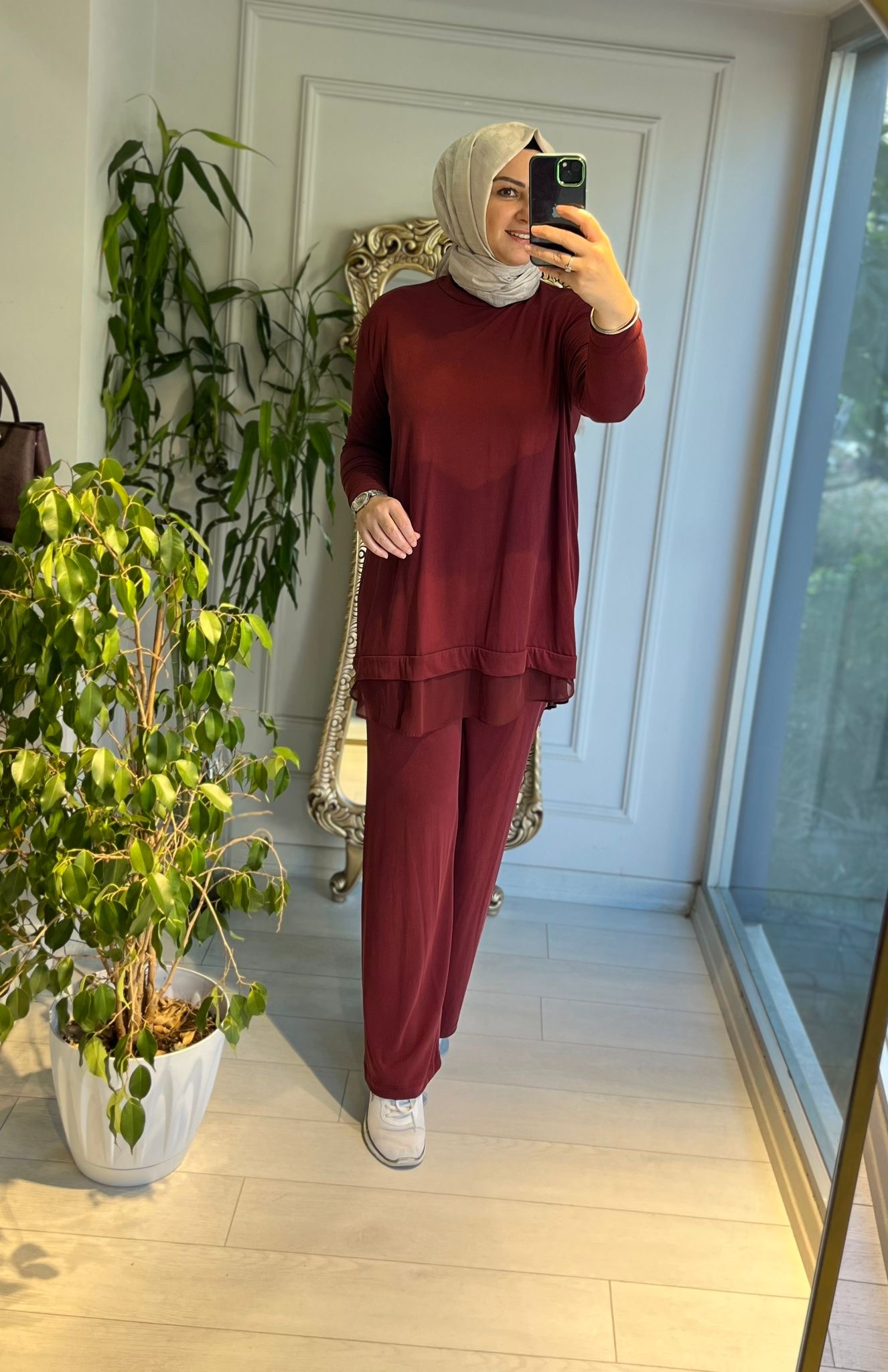 Etek ucu Şifon Modal Kumaş Takım Bordo