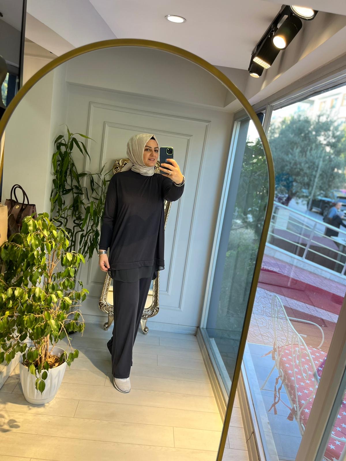 Etek ucu Şifon Modal Kumaş Takım Siyah