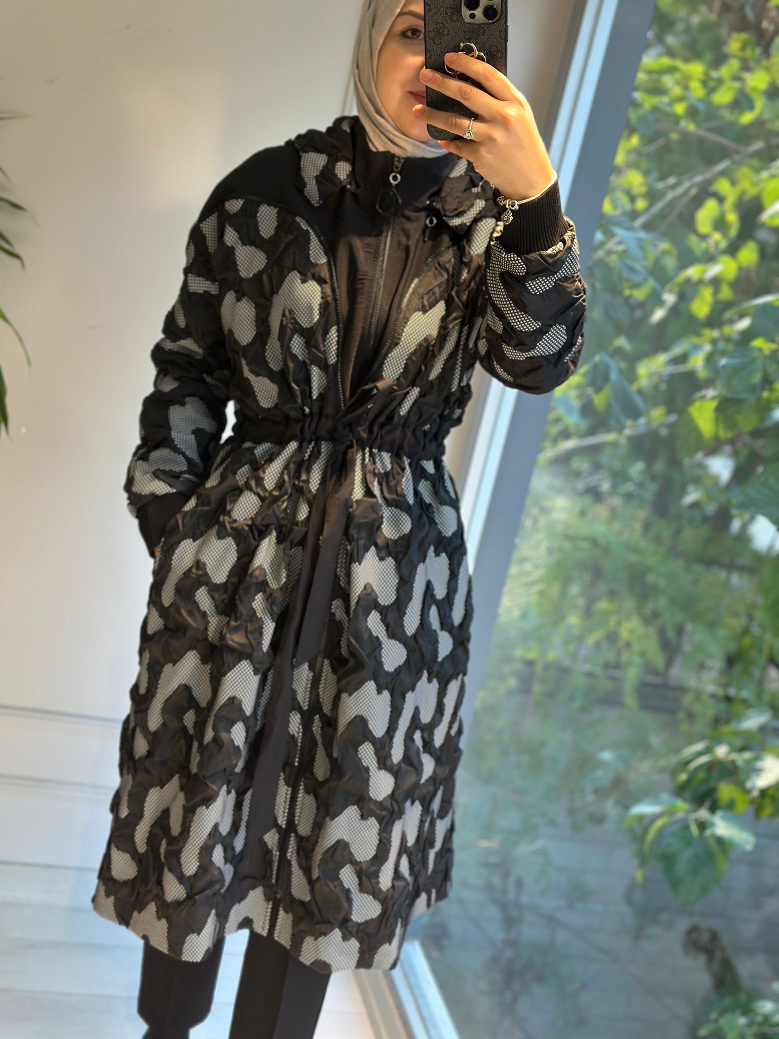 Kapüşonu Fermuarlı Bel Büzgülü Kamuflaj Kap