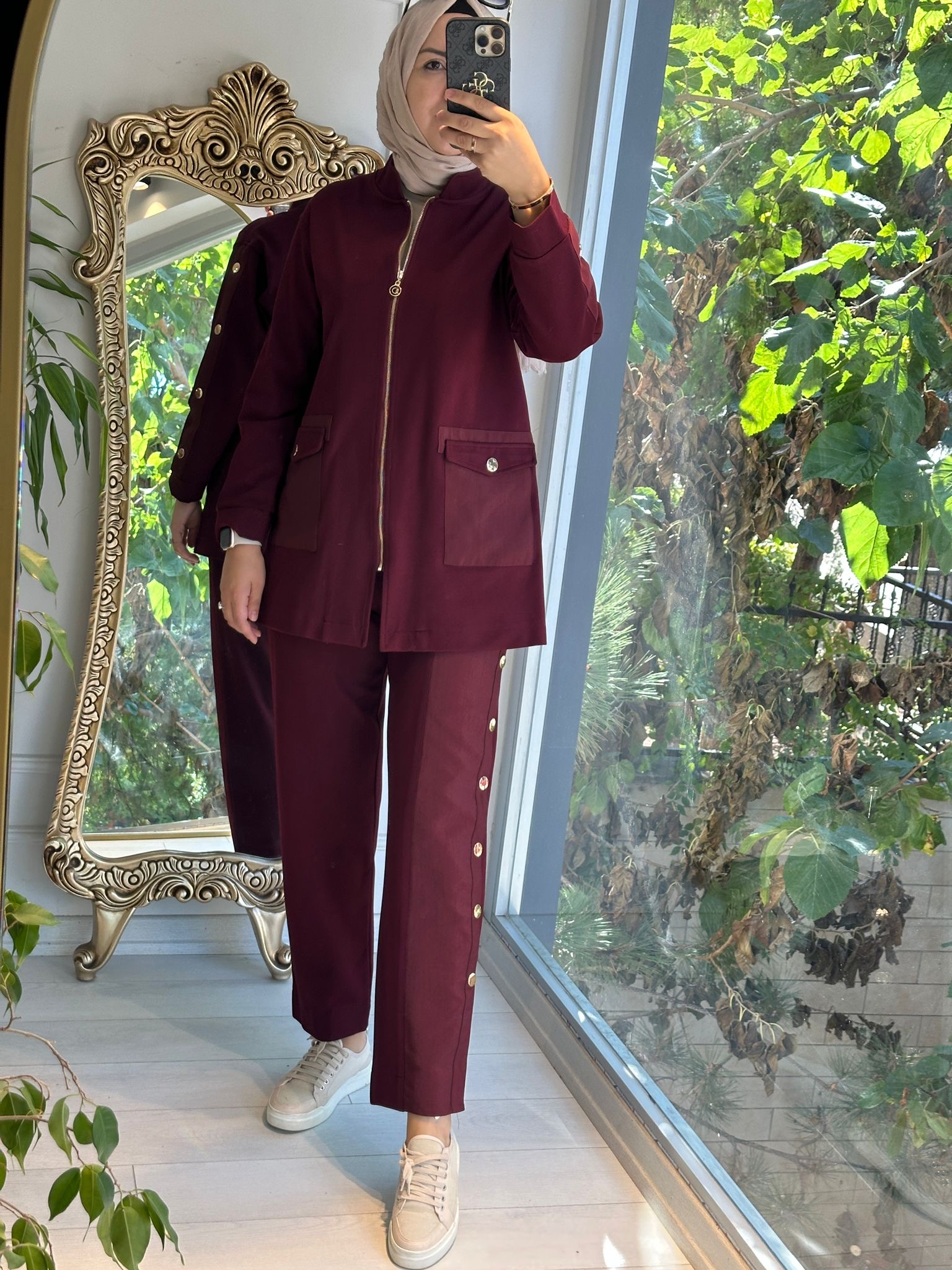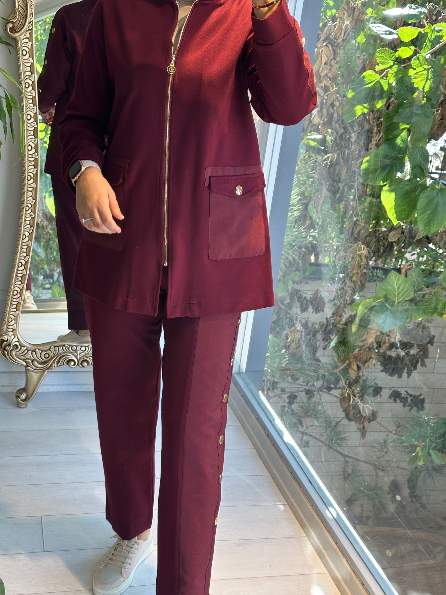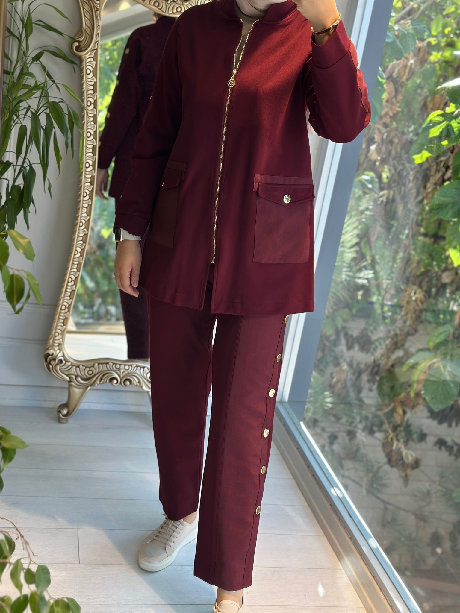 Kolları çıtçıt hakim yaka ceket Bordo