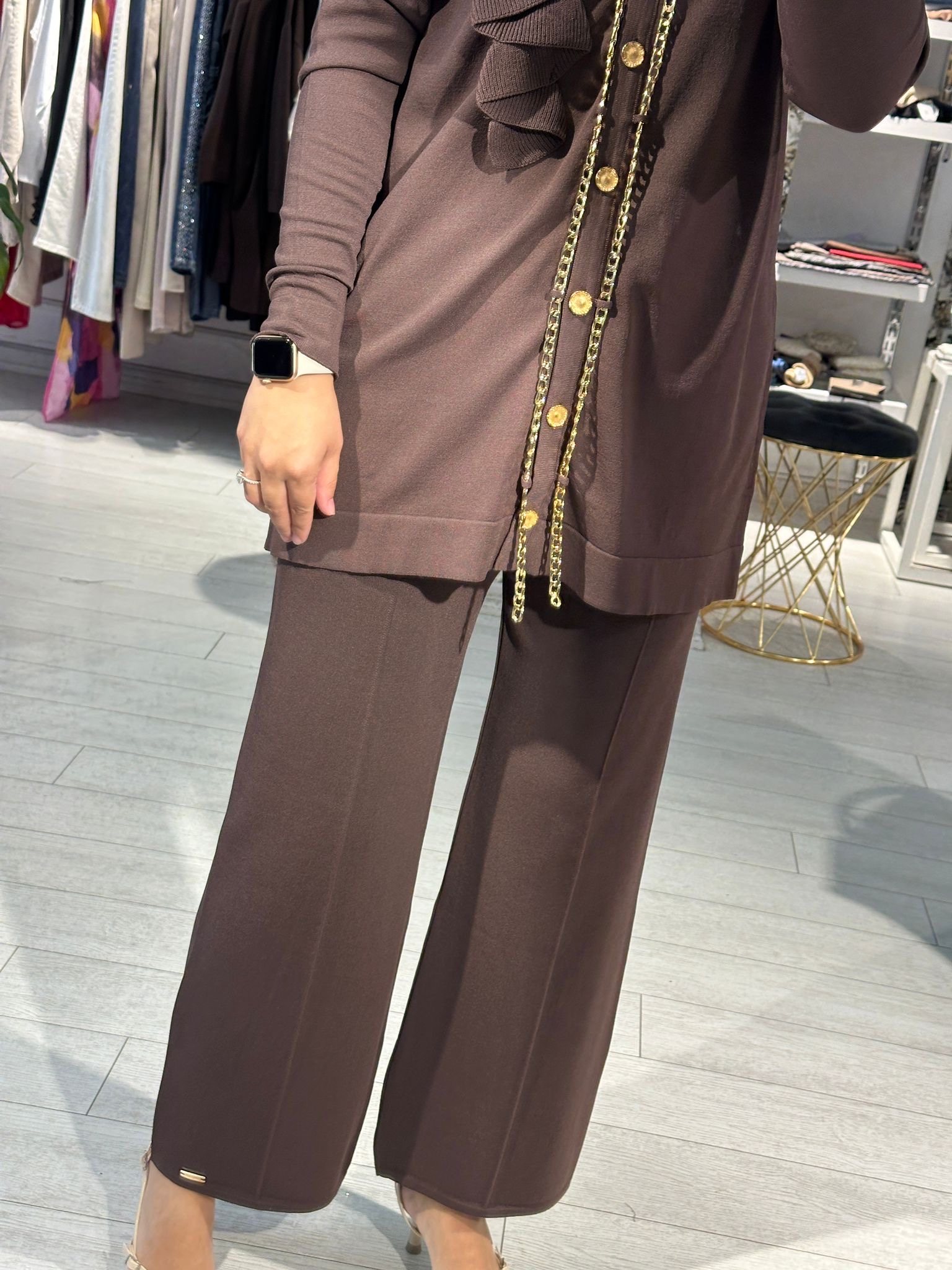 Nervürlü Bol Paça Merserize Pantolon Kahve