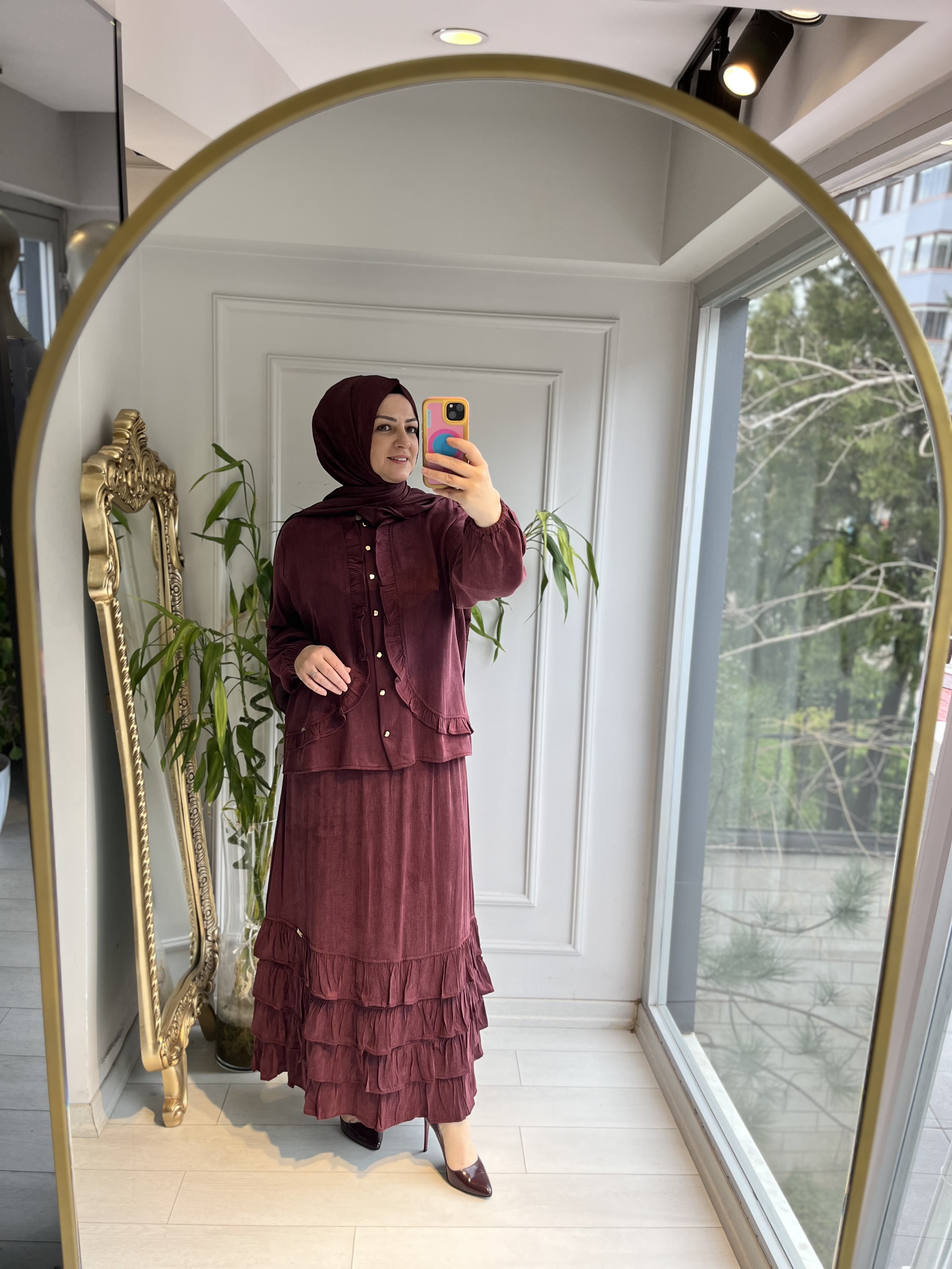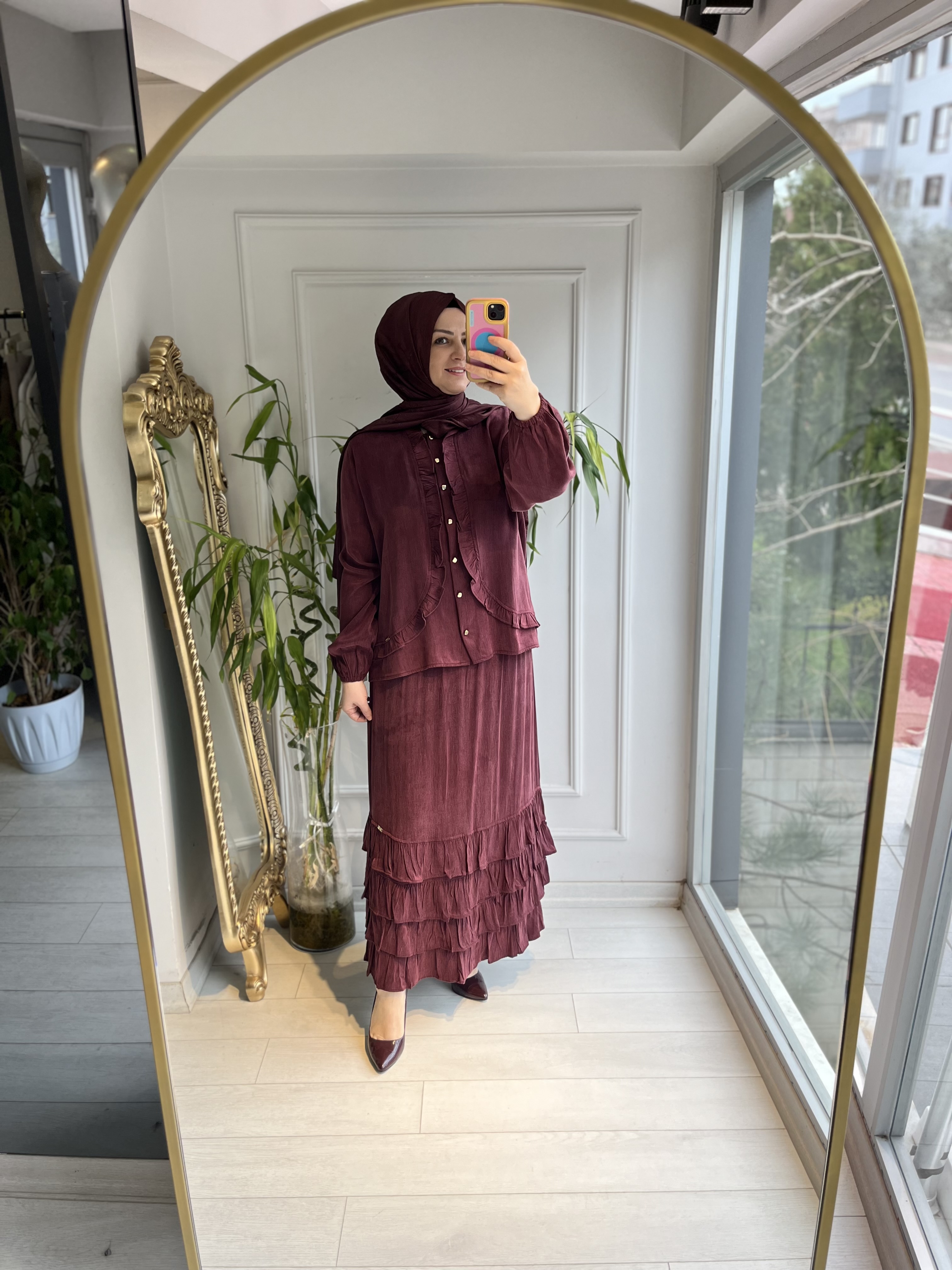 Ön fırfırlı cupra gömlek Bordo