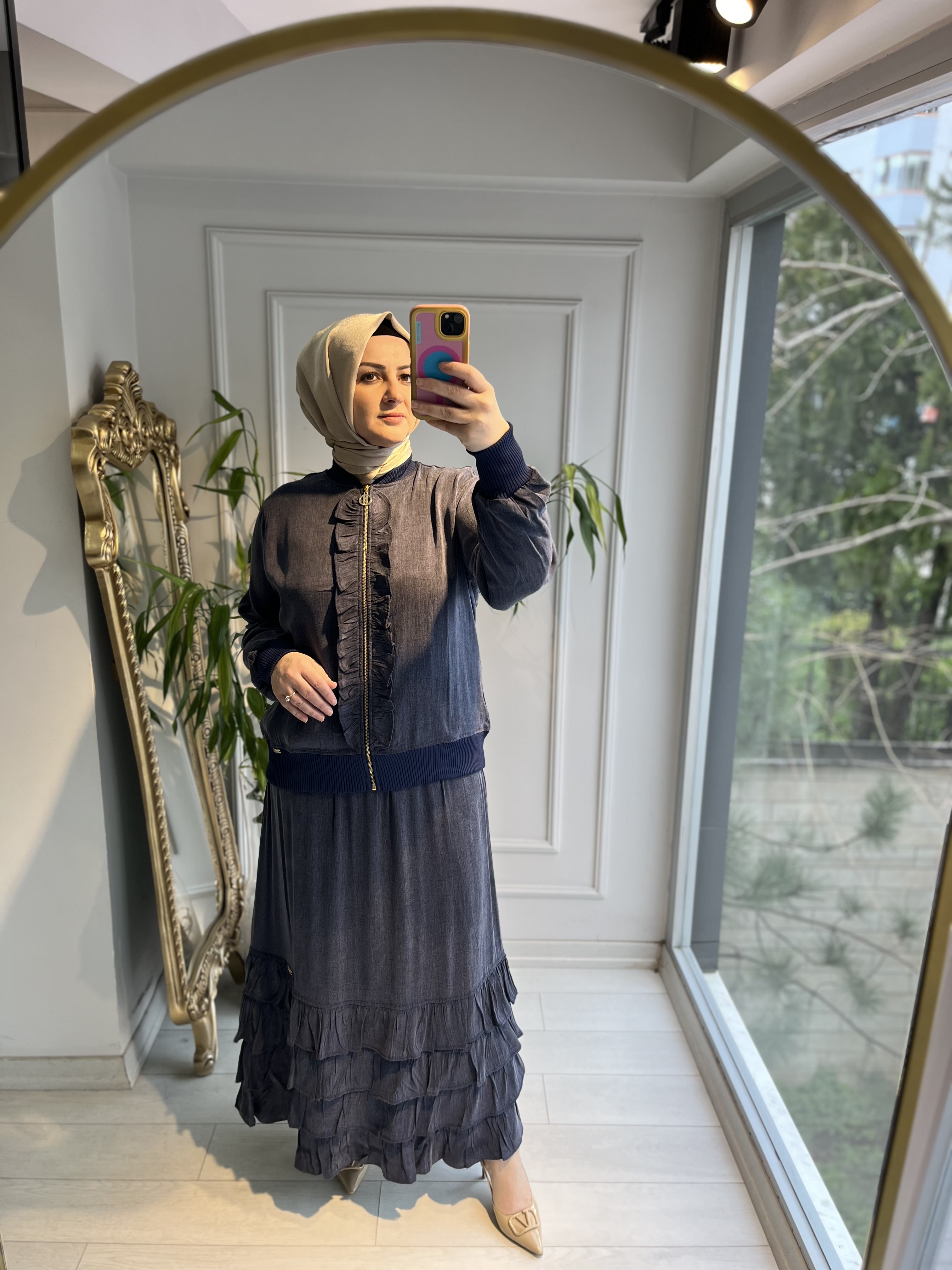 Ön orta fırfrılı bomber ceket Lacivert
