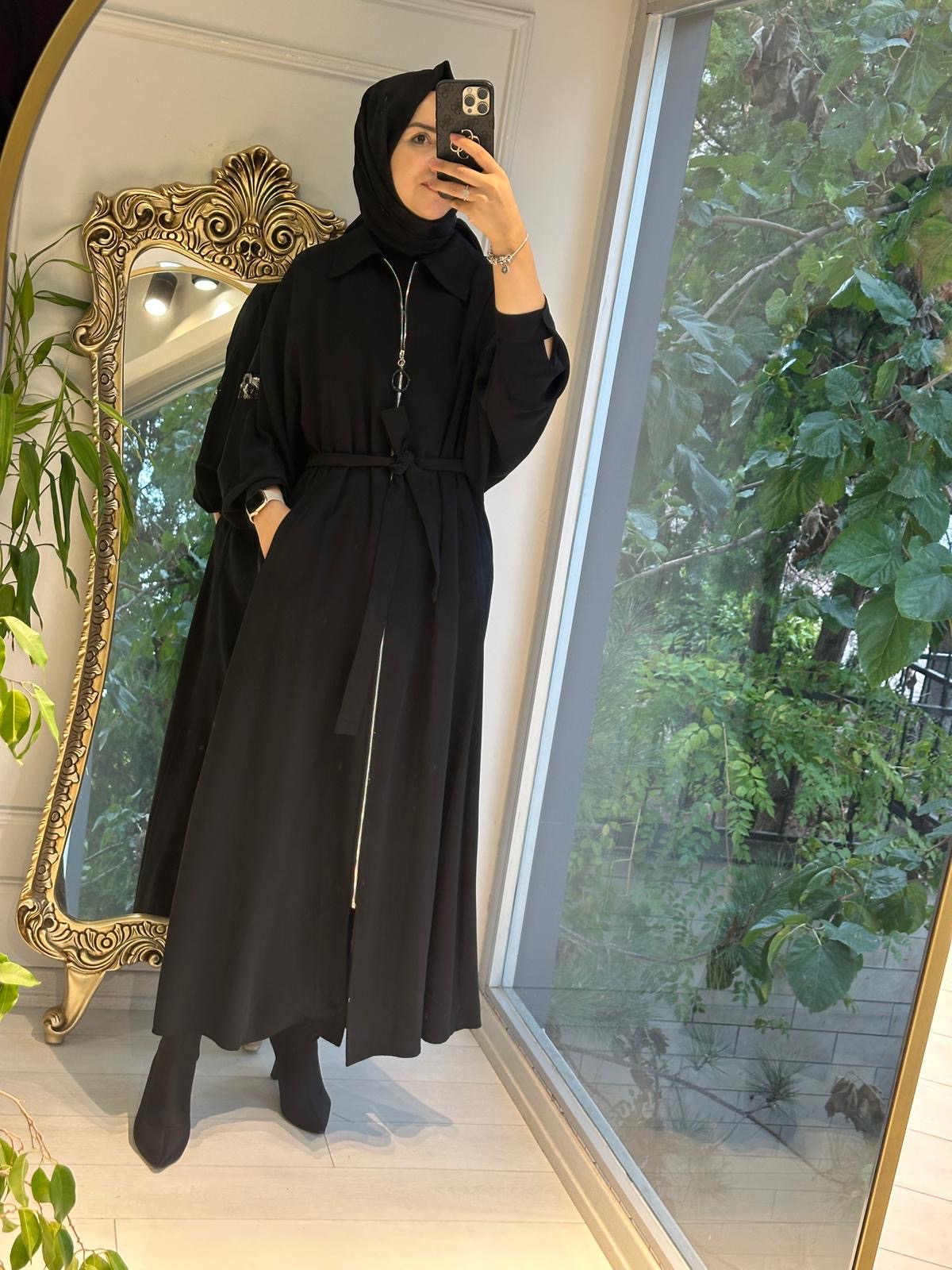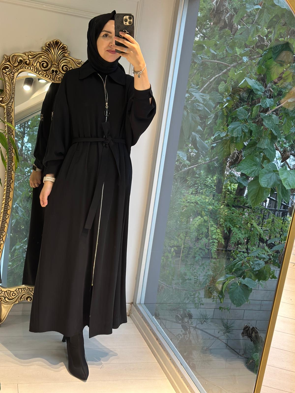 Önü Fermuarlı İçten Bağlamalı Kap Siyah