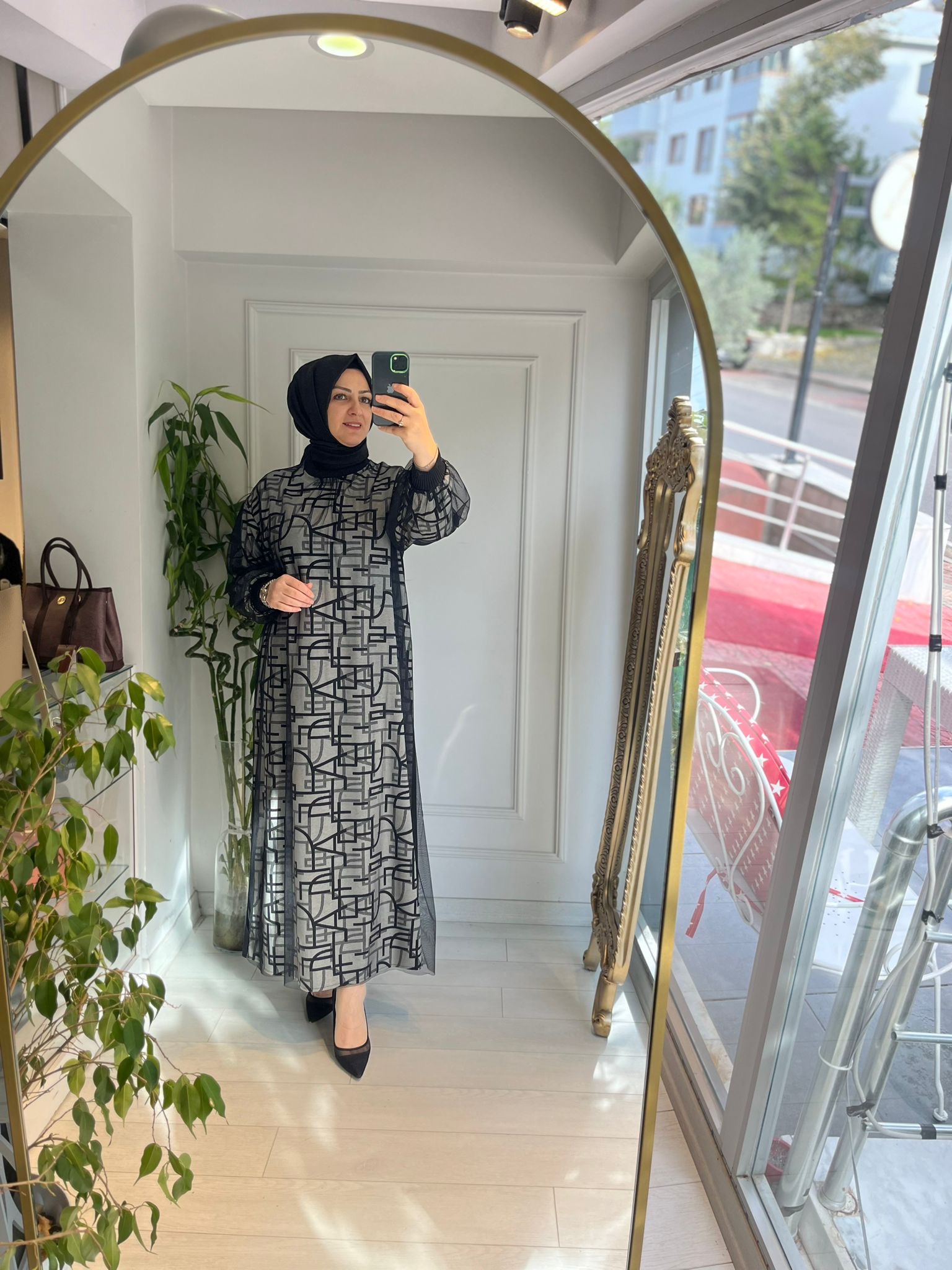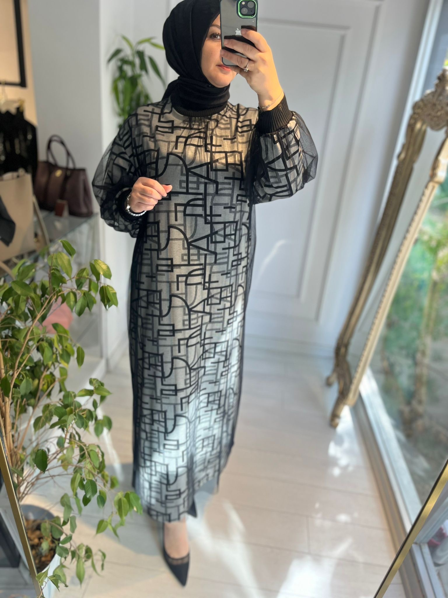 TÜL DETAYLI BASKILI TRİKO ELBİSE