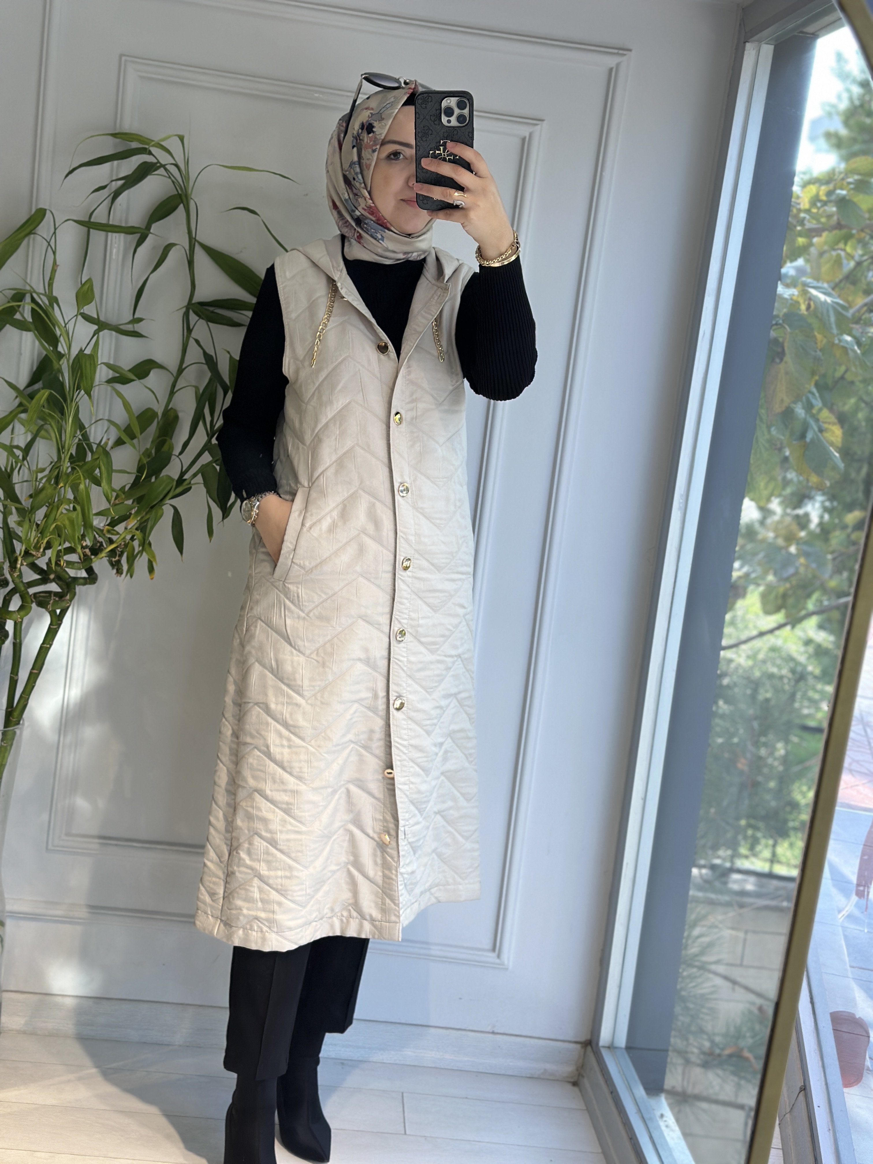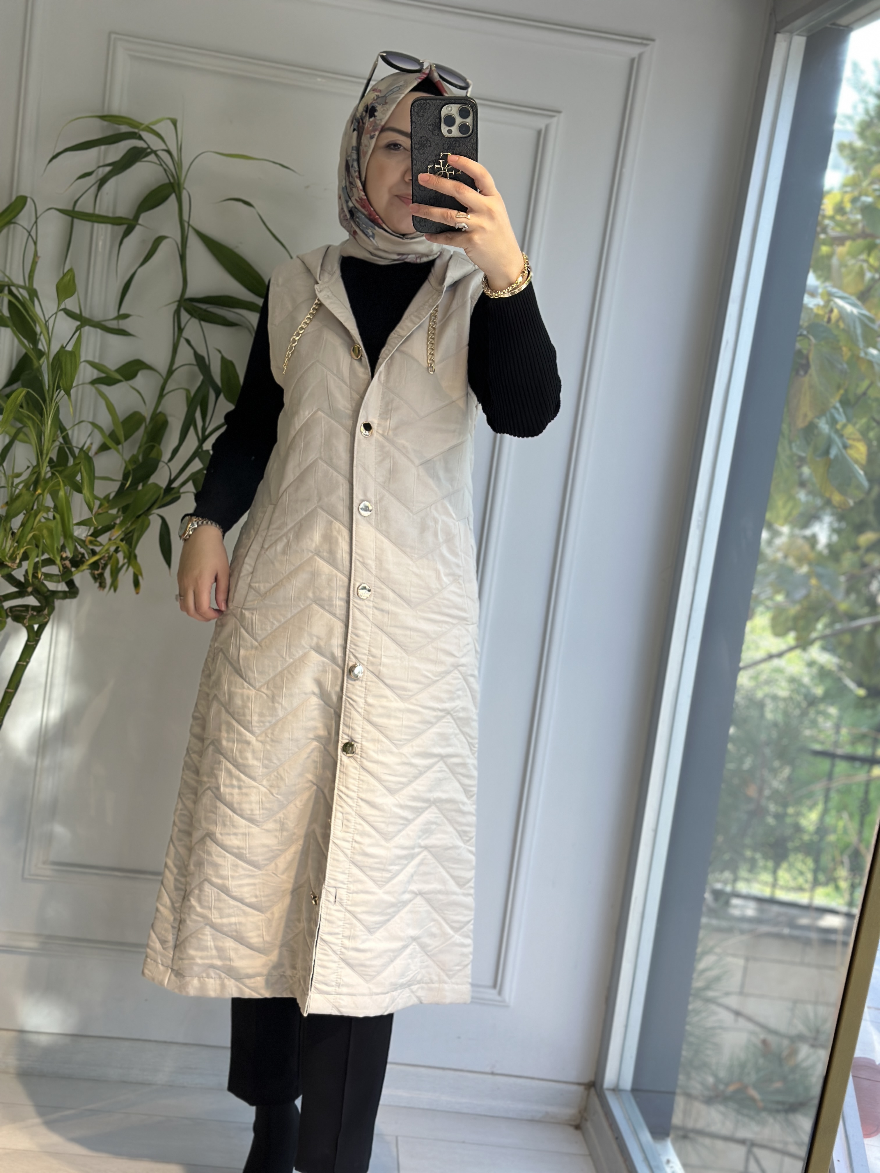 Uzun kapitone yelek vİzon