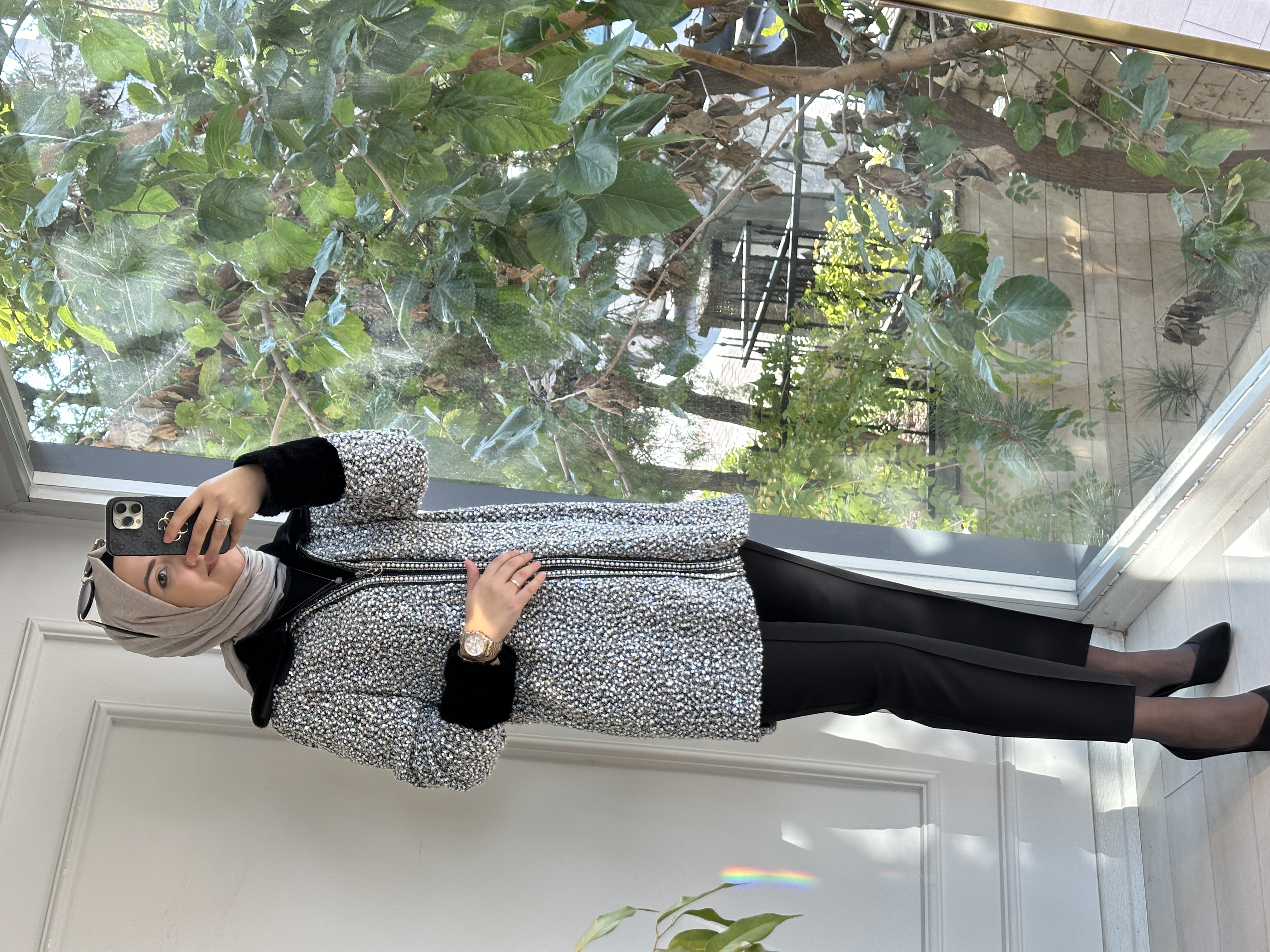 Yaka kürklü pullu yumoş ceket Siyah